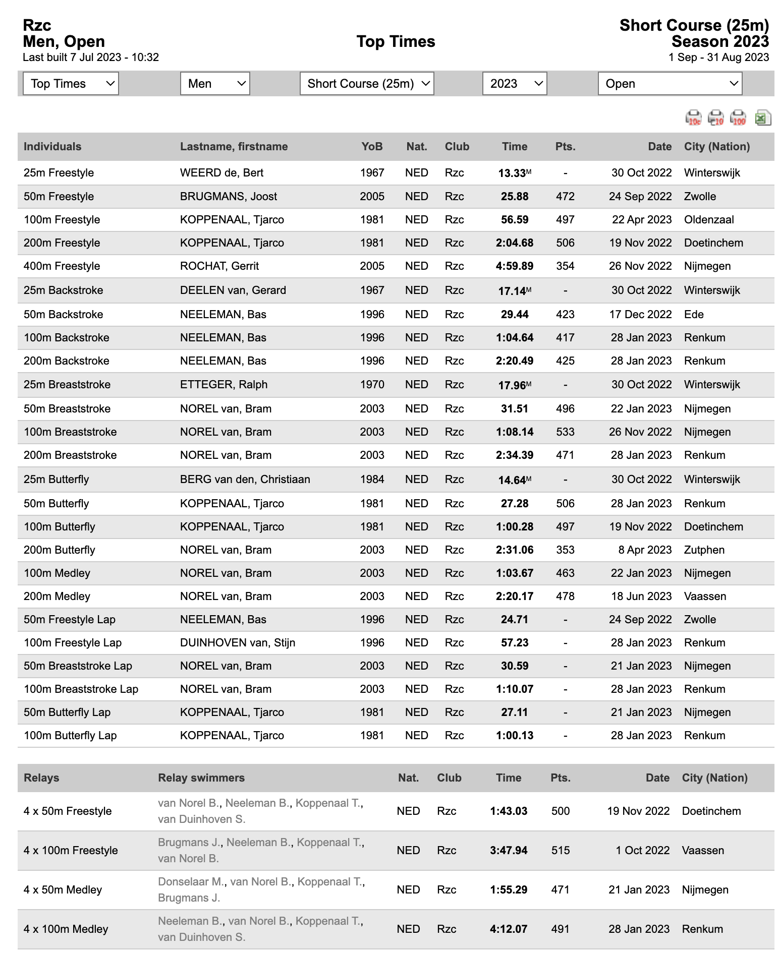 • Swimrankings